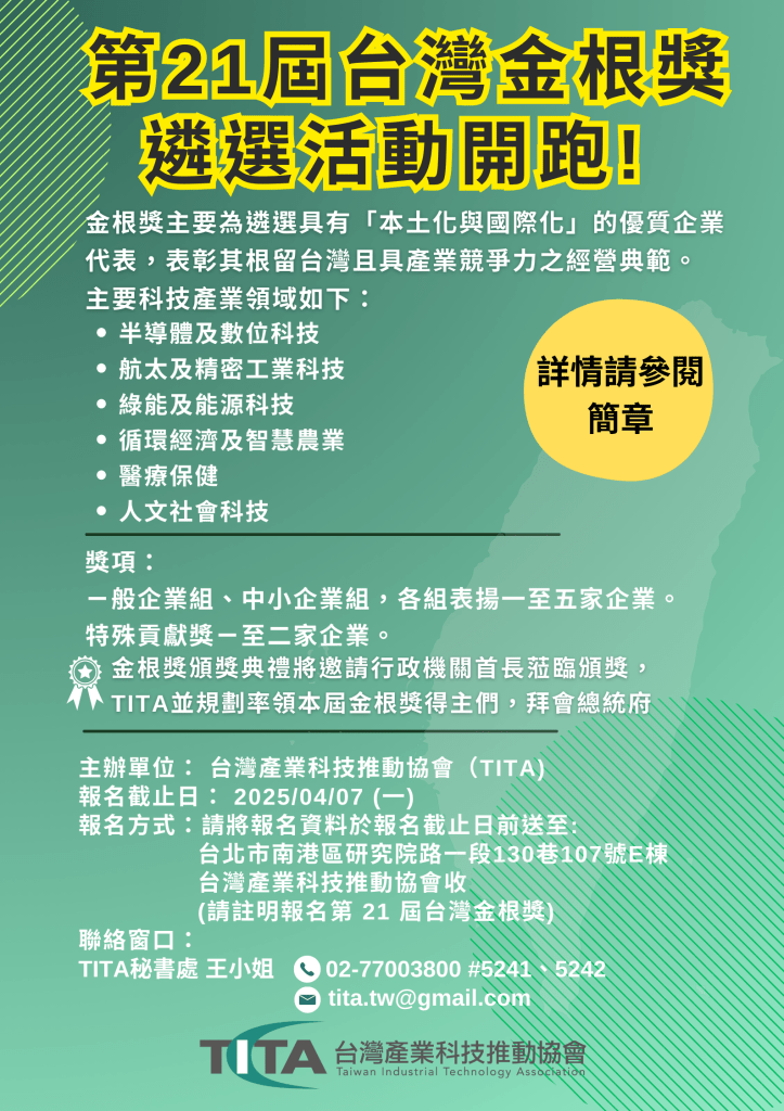 敬請參閱附件第 21 屆台灣金根獎簡章,也歡迎轉知分享。